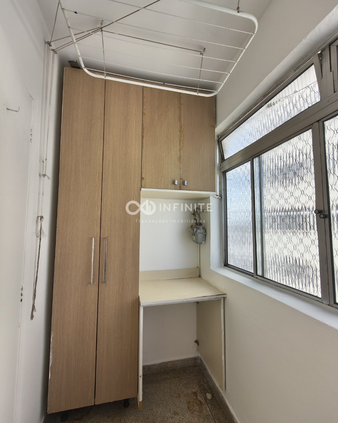 Entre os diferenciais estão piso laminado de madeira nas áreas secas e piso cerâmico nas áreas molhadas, armários na cozinha e no quarto principal, banheiro com box em vidro e janelas com tela de proteção.